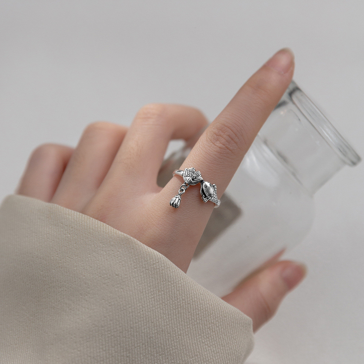 s925 sterling silver small trendy silver oval adjustable silver ring