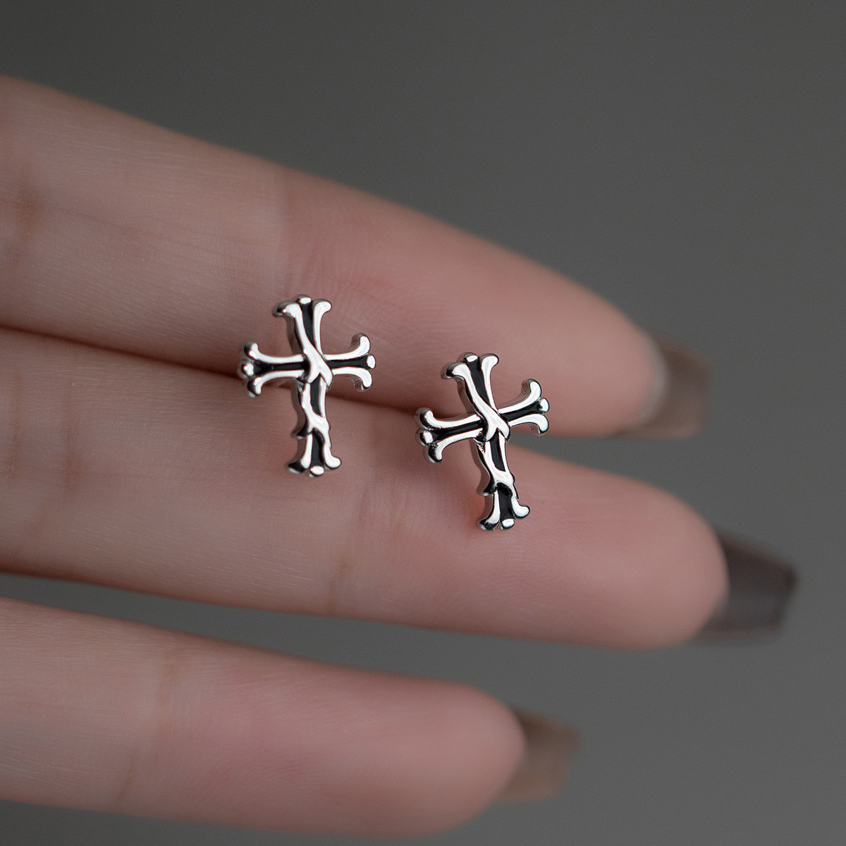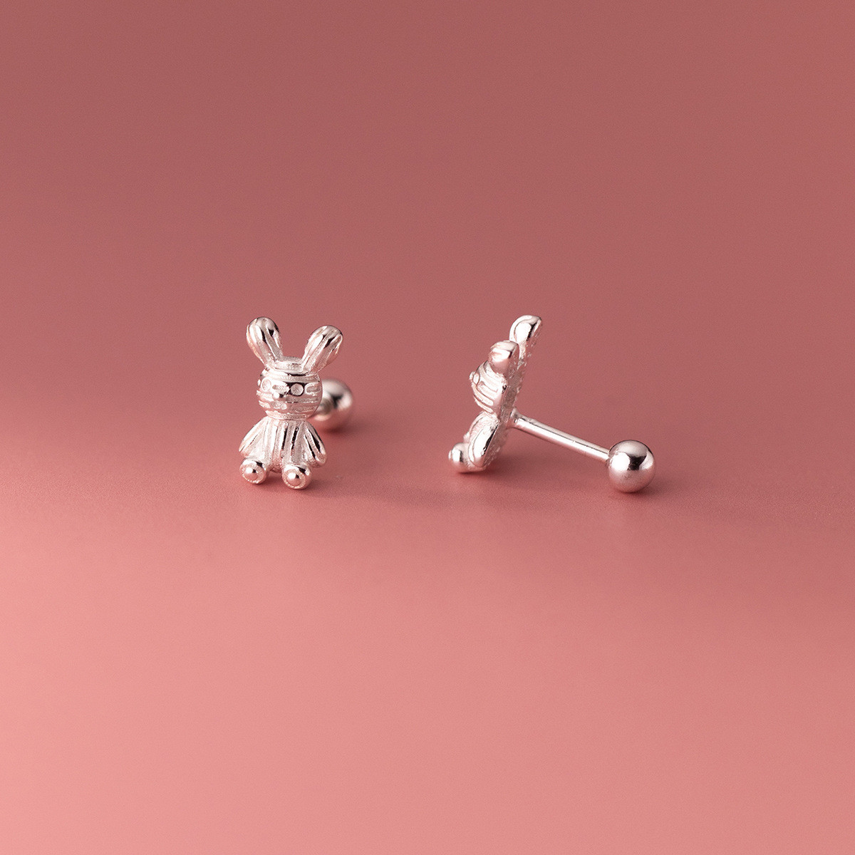 s925 sterling silver stud chain bar simple earrings
