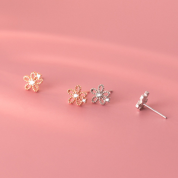 sterling silver vintage rose stud earrings