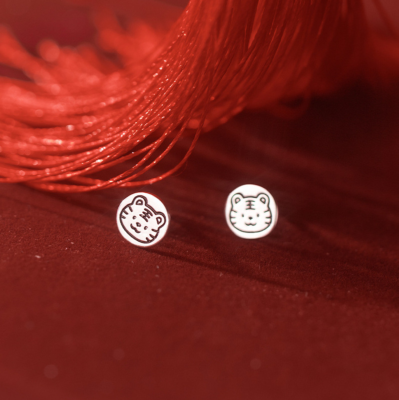 s925 sterling silver vintage silver hollowed black rhinestone cute bear earrings