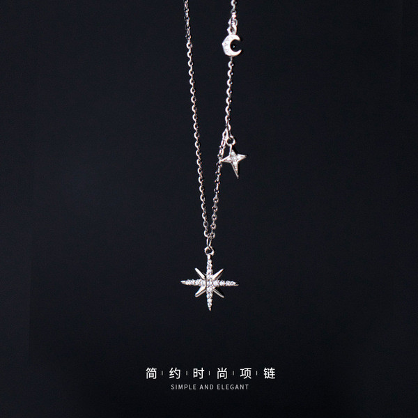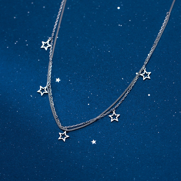 s925 sterling silver fashion doublelayer hollowed star necklace