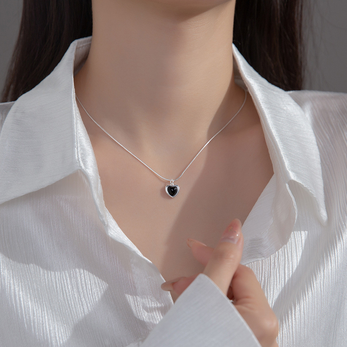 s925 sterling silver chic simple trendy rhinestone heart sweet necklace