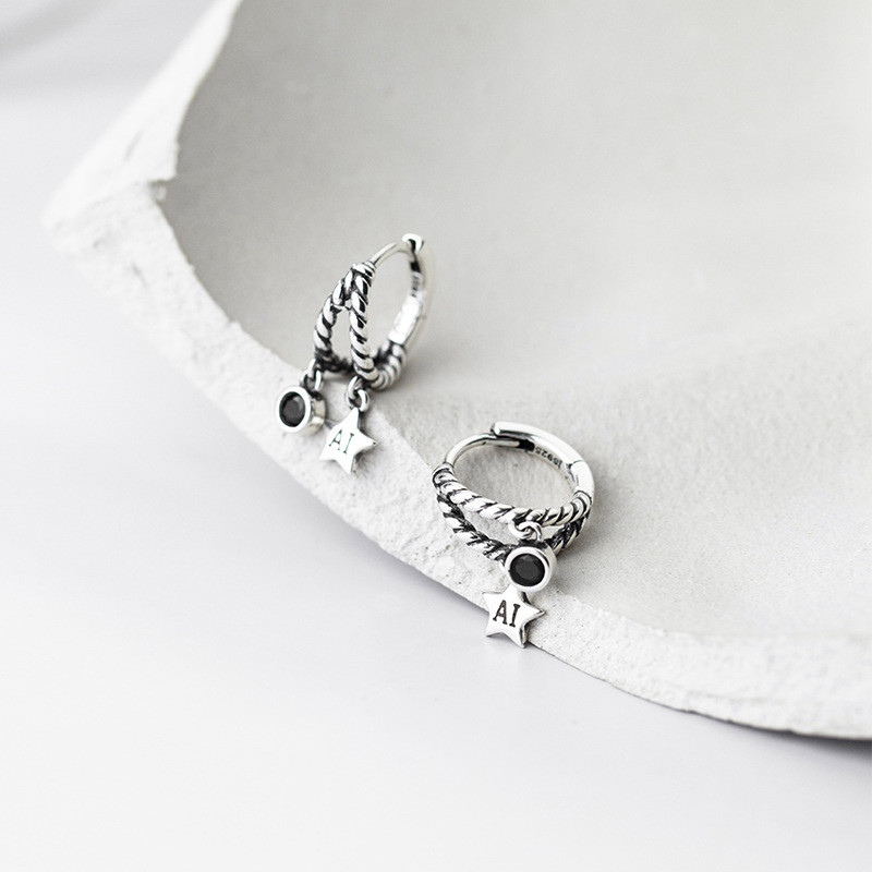 s925 sterling silver vintage silver hollowed unique fashion earrings