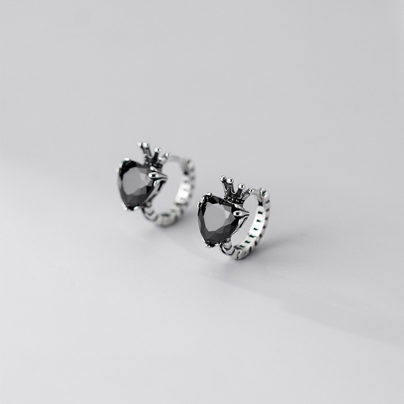 s925 sterling silver silver simple vintage black rhinestone heart earrings