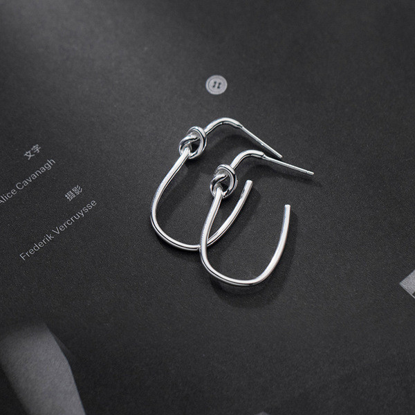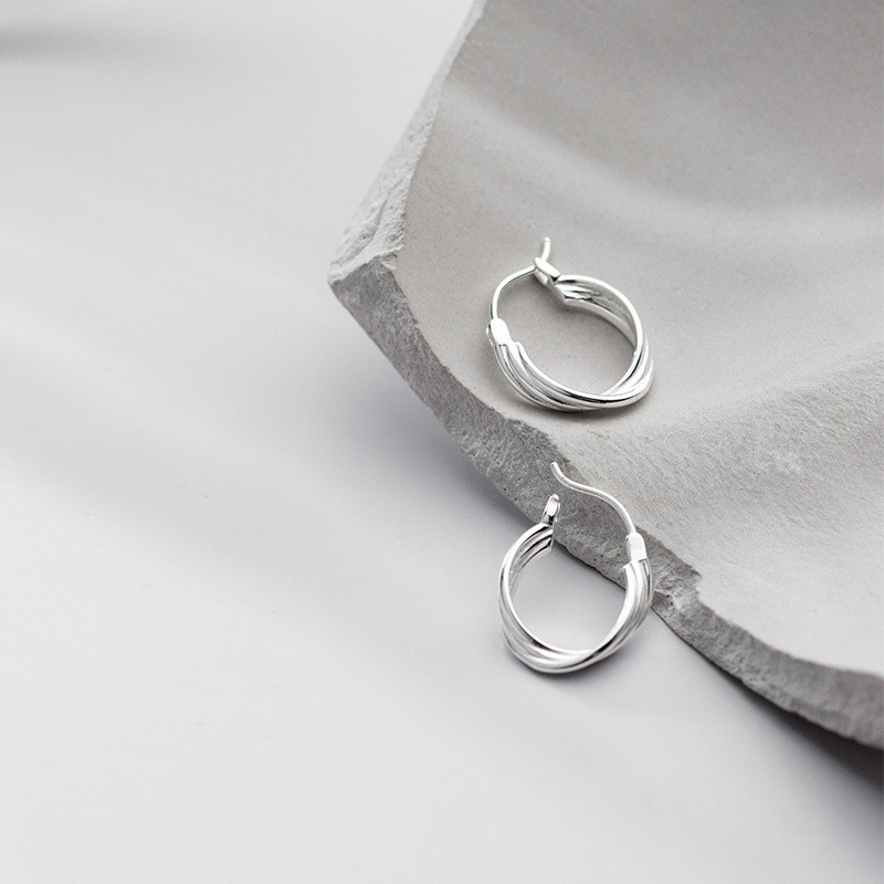 s925 sterling silver small unique metal braided irregular earrings