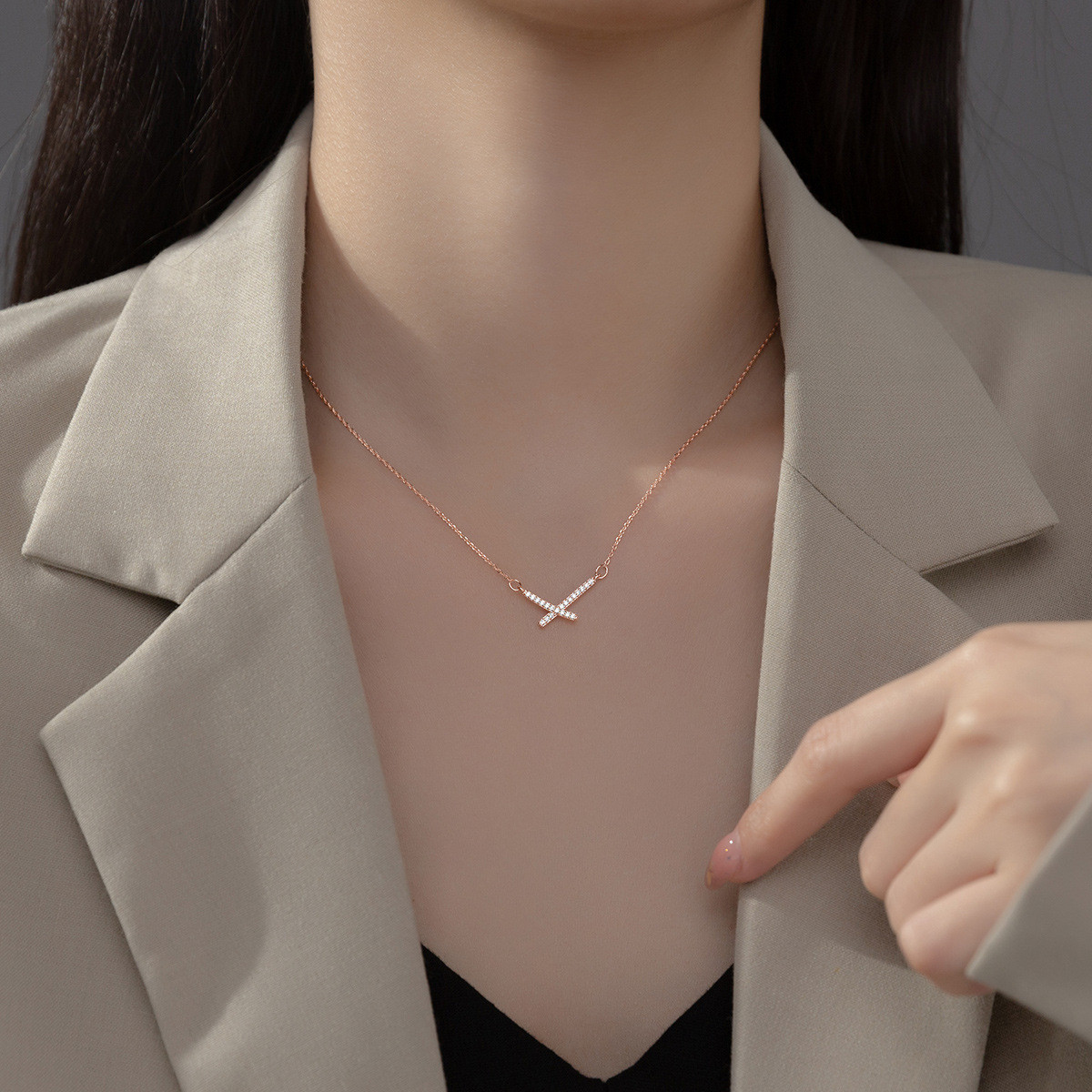 s925 sterling silver rhinestone fashion silver necklace