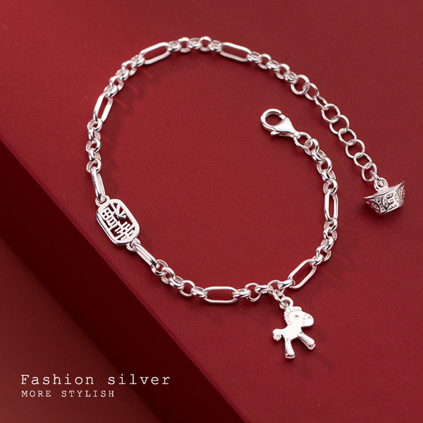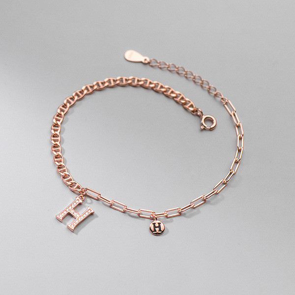 s925 sterling silver unique minimalist chain doublelayer charm bracelet