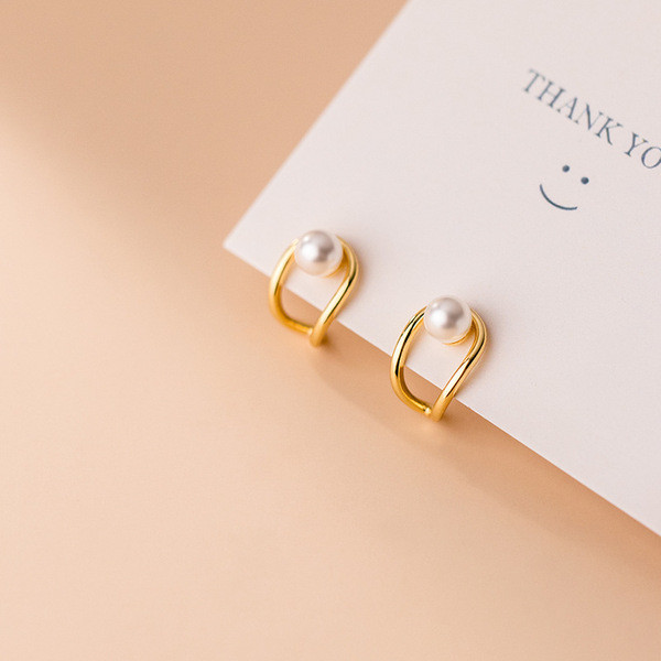 s925 sterling silver chic simple unique pearl twoway short dangle earring earrings