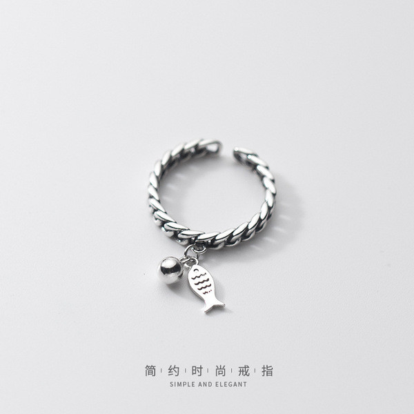 wrinkled geometric quality sterling silver s925 adjustable ring