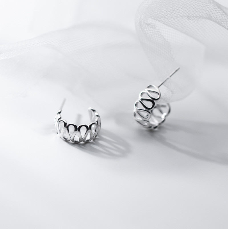 s925 sterling silver simple hollowed earrings