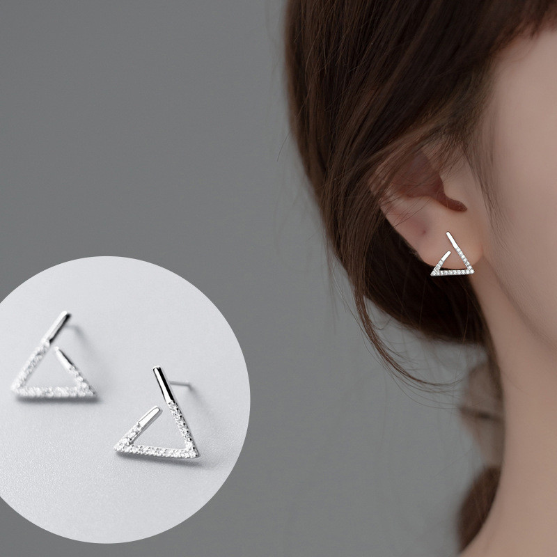 s925 sterling silver small trendy rhinestone earrings
