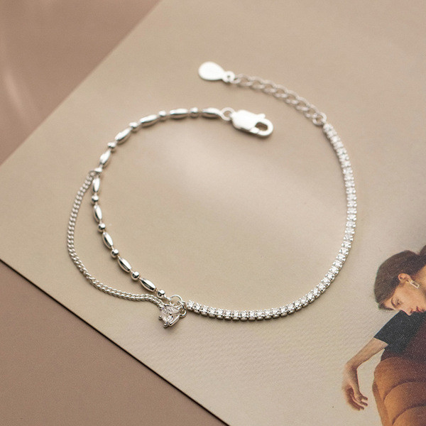 s925 sterling silver simple fashion charm bracelet